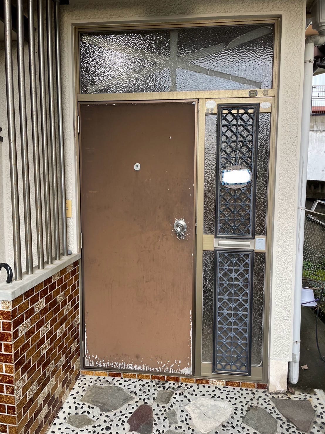 ■ 施工前の玄関ドアは、鍵が古くなって防犯上の心配やすきま風で玄関が寒かったりとお悩みも多いです