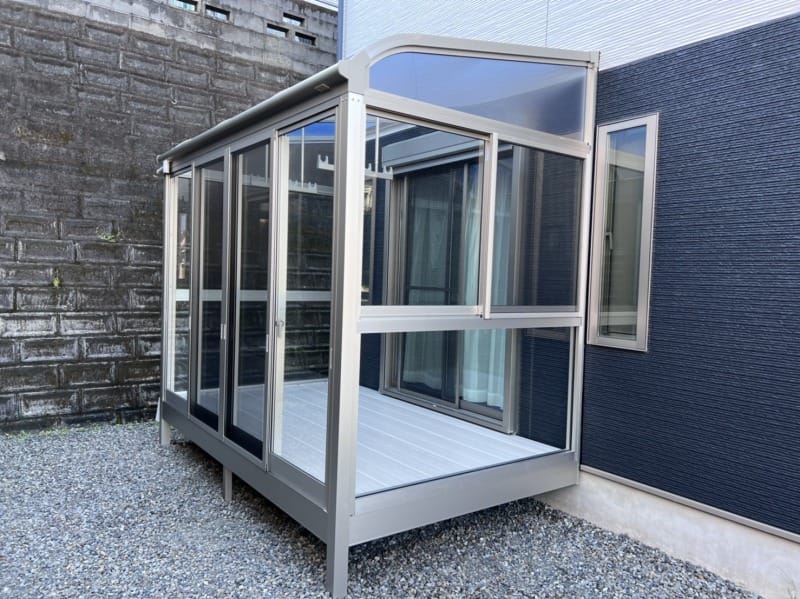 おはようございます! サンルームの工事を行いました! 雨や火山灰から洗濯物を守ってくれるサンルーム(#^^#) サンルームに干しておけば、来客時にも生活感が見えなくておススメです(*’ω’*)