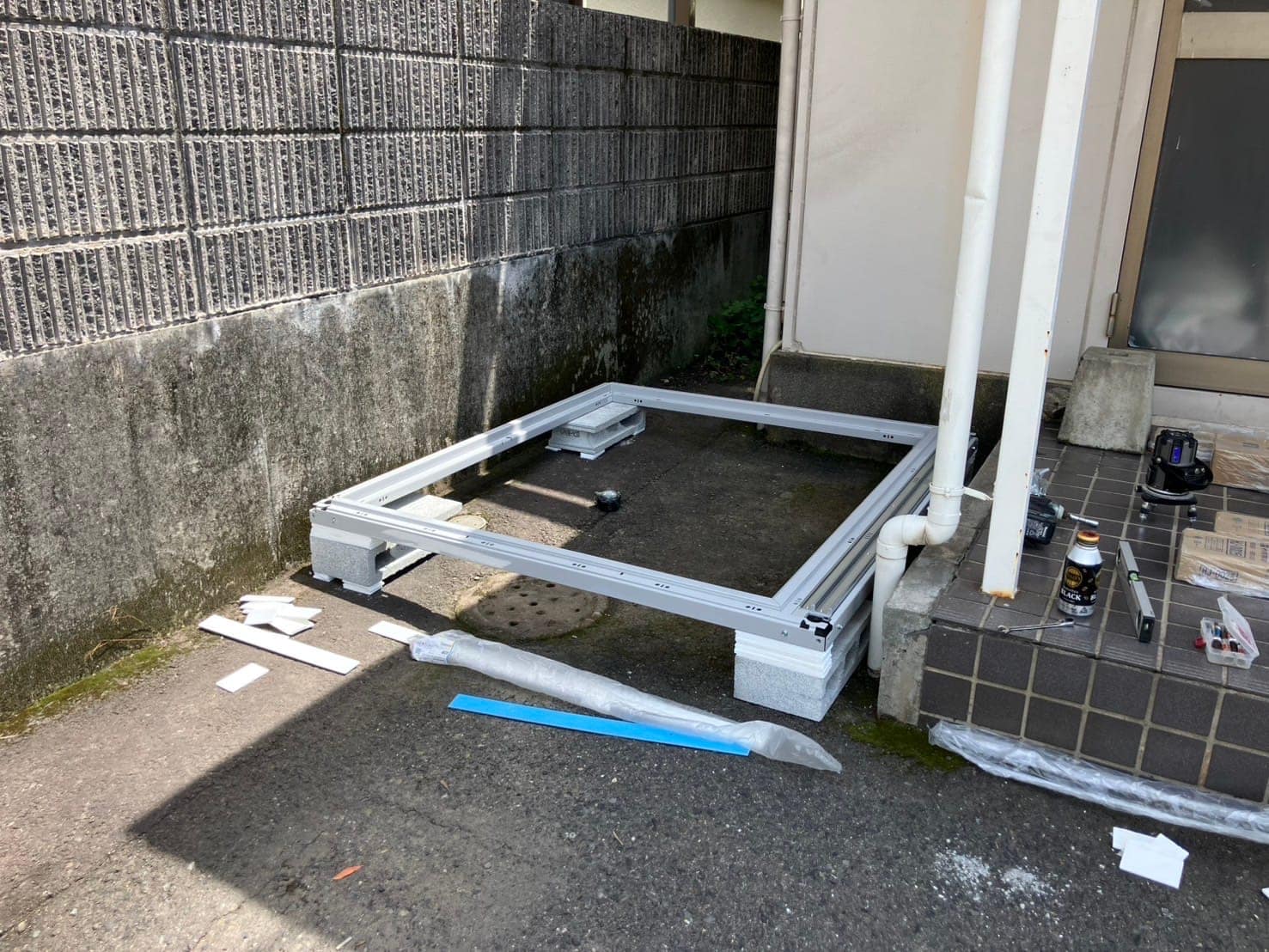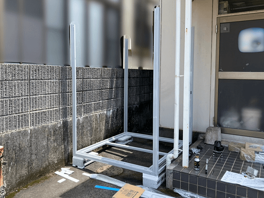 こんにちは! 今回は、事務所に物置を設置した施工事例をご紹介します🎵 《 施工前 》《 施工中 》
