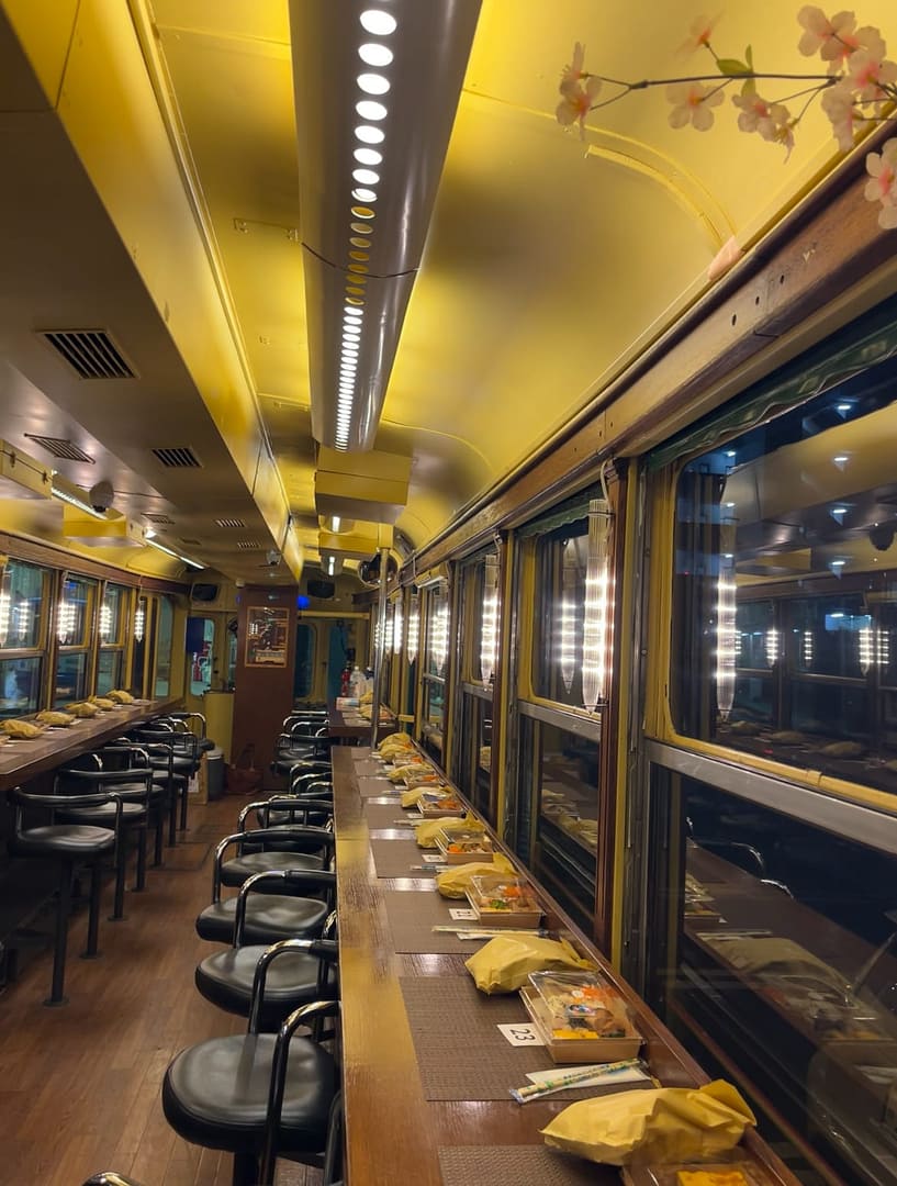 電車の中では、ゲームをしたりご飯を食べたりもできます👍
